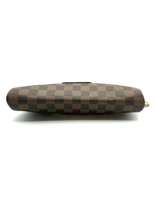 Pochette Louis Vuitton con tracolla, perfetta per ogni occasione. Il design a scacchiera la rende unica. - Motivo a scacchiera beige e grigio. - Tracolla regolabile. - Dettagli dorati.