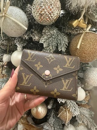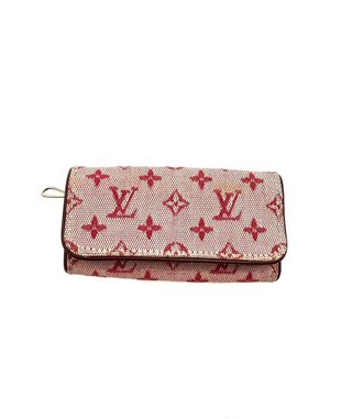Elegante portafoglio Louis Vuitton in tela Monogram. - Chiusura a bottone. - Dettaglio bottone rosa. - Design compatto.