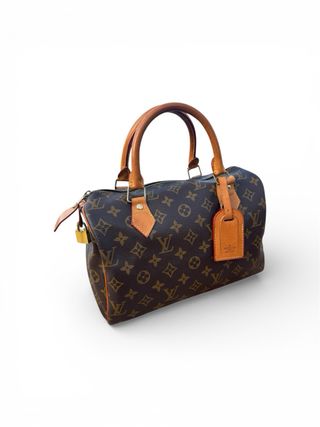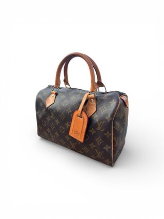 Iconica borsa Louis Vuitton Speedy 25 in tela Monogram. Un classico intramontabile, perfetto per l'uso quotidiano. - Tela Monogram marrone e beige. - Manici in vacchetta. - Chiusura con zip. - Dettagli in metallo dorato.