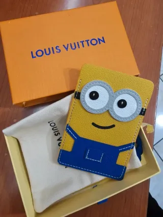 Porta carte Louis Vuitton con un simpatico design ispirato ai Minion. Perfetto per aggiungere un tocco di allegria. - Design a tema Minion. - Materiale in pelle. - Colori vivaci giallo e blu.
