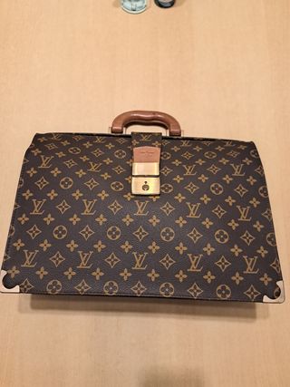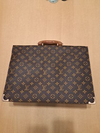 Bellissima e ben conservata borsa portadocumenti Louis Vuitton vintage, in tela monogram. - Manico in pelle color cuoio - Chiusura con serratura in metallo - Angoli rinforzati