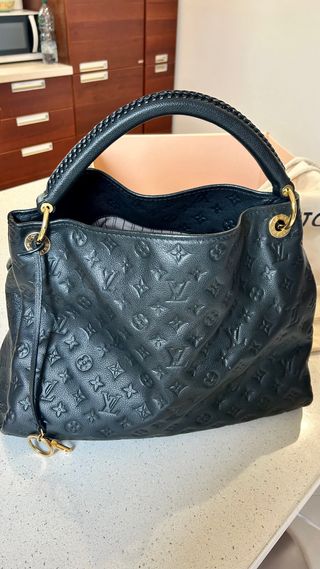 Borsa Louis Vuitton modello Artsy in pelle nera, con dettagli monogram goffrato. usata pochissime volte fattura d’acquisto in ultima foto