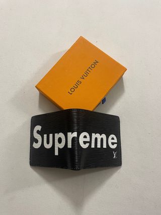 Portafoglio Supreme x Louis Vuitton in pelle nera con logo. - Design iconico. - Logo Supreme a contrasto.