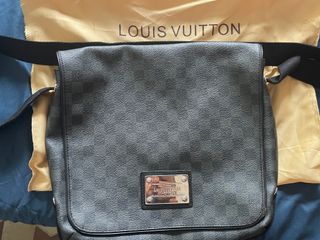 Borsello a tracolla Louis Vuitton con design a scacchiera. - Colore principale nero con dettagli blu. - Tracolla regolabile.