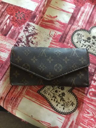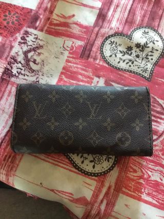 Elegante portafoglio Louis Vuitton. - Colore marrone con dettagli rossi. - Design iconico del marchio.