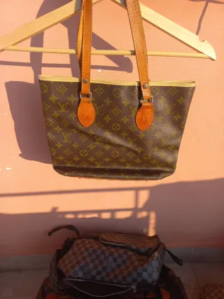 Borsa Louis Vuitton in tonalità beige e marrone. - Logo inciso all'interno. - Dettagli in pelle.