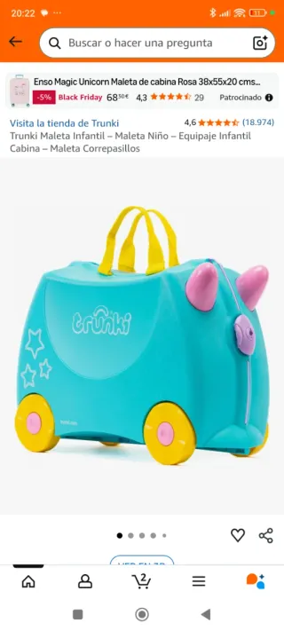 Trolley o valigia per bambini Imaginarium a forma di zaino di grande capacità, con ruote e maniglia estensibile a due altezze. Si apre frontalmente e ha diversi scomparti orizzontali per organizzare i vestiti e ottimizzare lo spazio, gli scaffali sono rimovibili. Ha tutti i tipi di tasche e scomparti: estraibili, 2 integrate, 1 grande e 1 sacca a rete per i vestiti sporchi, integrata nella valigia. Realizzata in nylon e plastica a struttura dura. Il coperchio può essere usato per cambiarsi senza toccare il pavimento. È una valigia molto completa. È stata usata 4 volte per andare in colonia. Ha alcuni segni di usura, misure 55 alto x 34 largo x 29.