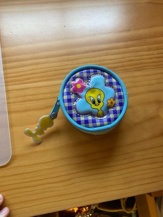 Portamonete rotondo con un divertente design di Tweety e fiori. - Chiusura con cerniera. - Decorazione di Tweety. - Design floreale.