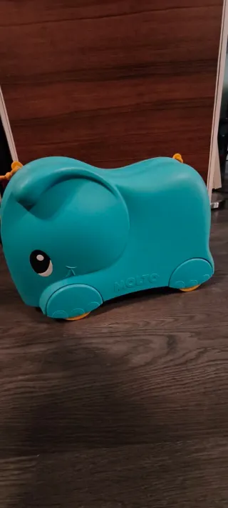 Valigia per bambini divertente a forma di elefante. Design in rosa. Marca Molto. Ruote per facilitare il trasporto e persino portare il bambino. Buono stato.