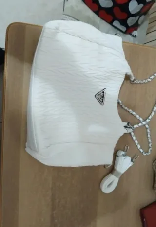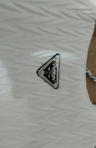 Borsa Prada originale in colore bianco. - Logo triangolare Prada in metallo. - Tessuto trapuntato con motivo a chevron.