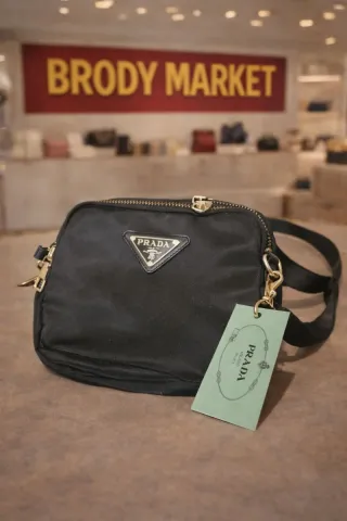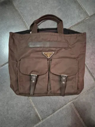 Borsa a spalla Prada originale in colore nero, perfetta per portare i tuoi oggetti essenziali. Realizzata in nylon resistente. Cinturino regolabile con chiusura a fibbia. Scomparto principale con cerniera. Tasca frontale aggiuntiva con cerniera. Logo triangolare di Prada sulla parte frontale. La borsa ha circa 15 anni. Si trova in condizioni generali da regolari a buone, considerando la sua età. Mancano alcuni accessori/dettagli originali e presenta segni visibili di utilizzo, inclusi piccoli graffi e usura generale in diverse zone. Con una leggera ristrutturazione o una buona manutenzione, la borsa ha un grande potenziale.