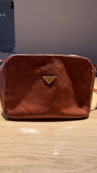 Borsa a tracolla in pelle marrone con trapuntatura a rombi. - Logo triangolare Prada sul davanti. - Design classico e versatile. Manca etichtta dentro credo che sia vintage