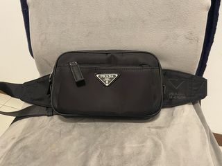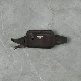 Marsupio Prada in nylon nero, un accessorio pratico e di tendenza. - Logo triangolare Prada in metallo. - Tasca frontale con zip. - Cintura regolabile con chiusura a scatto.