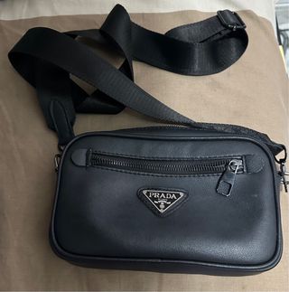Bandolera del marchio Prada in colore nero. Design elegante e pratico. - Materiale testurizzato. - Cinturino regolabile. - Chiusura con cerniera.