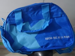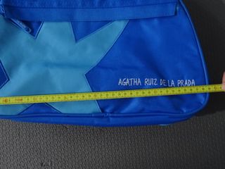 Borsa del marchio Agatha Ruiz de la Prada. Design con stelle in due tonalità di blu. Manici e tracolla. Chiusura con cerniera.