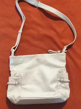 Borsa a tracolla Coveri Collection in tonalità bianco panna. - Materiale effetto scamosciato. - Chiusura con patta. - Logo del brand stampato sul davanti e interno Ottime condizioni. Misure 29.5 x 25 cm