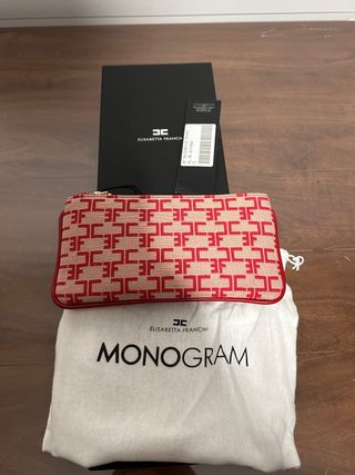 Borsa Elisabetta Franchi con motivo monogram. Include dustbag e scatola. - Motivo monogram all-over. - Dettagli in pelle rossa. - Chiusura con zip.