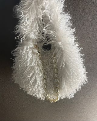 Borsa in morbido pelo bianco, con dettagli in perle. - Materiale: Pelo sintetico - Colore: Bianco - Dettagli: Perle decorative