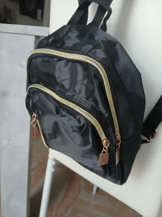 Zainetto perfetto per completare il tuo look dal design compatto e pratico. Materiale resistente in tessuto rasato. Dettagli con zip dorate e spalline regolabili. Mai usato, profuma ancora "di nuovo". Misure in foto.
