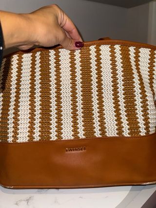 Borsa Twinset con un design a righe. - Materiale intrecciato. - Dettagli in ecopelle. - Logo TWINSET sul davanti.