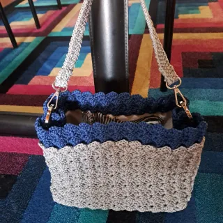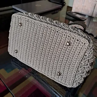 Borsa realizzata a mano all'uncinetto, con un design unico e dettagli curati. - Fodera interna con fantasia zebrata. - Manici in corda intrecciata. - Chiusura con moschettoni dorati.