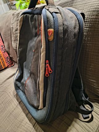 Zaino Techair modello 5702 in ottime condizioni, ideale per il trasporto sicuro del tuo portatile. Dotato di inserto imbottito con airbag per massima protezione, 4 tasche separate e zip per espandere il volume. Ergonomico e traspirante, realizzato con materiali di qualità. Idrorepellente, benché una nuova passata di spray sia consigliata per una protezione ottimale. Lo spazio portatile misura 30cm di larghezza e 37-38cm di altezza, pensato per portatili di circa 15,4 pollici (verifica le dimensioni del tuo dispositivo). Dimensioni esterne: 38x47x15 cm. Peso 1,8kg. I colori sono leggermente scoloriti, come visibile in foto. Perfetto