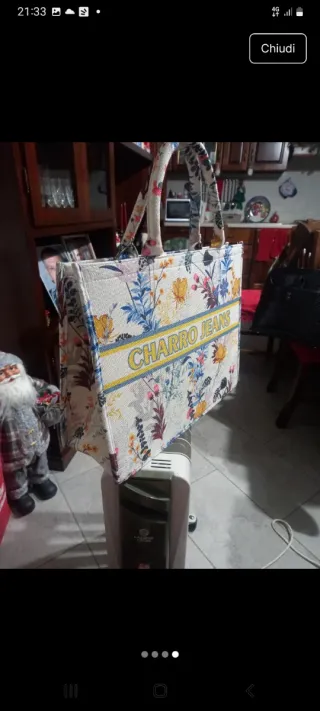 Borsa tote con una stampa floreale vivace e dettagli in ecopelle. - Design con stampa floreale. - Logo CHARRO JEANS a contrasto sulla fascia centrale. - Manici resistenti per un facile trasporto.