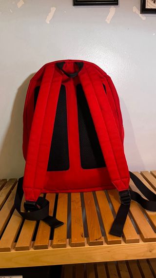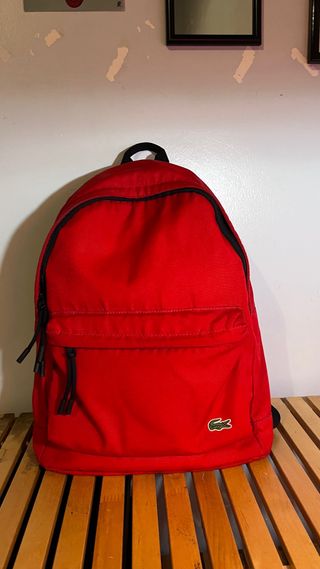 Zaino Lacoste di colore rosso, perfetto per l'uso quotidiano. - Logo Lacoste applicato sul davanti. - Tasca frontale con zip. - Spallacci regolabil