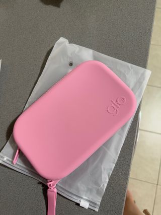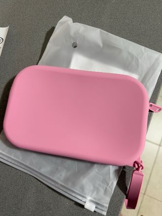 Pochette in gomma di colore rosa. - Materiale in gomma. - Chiusura con zip. - Logo glo stampato.