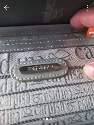 Elegante portafoglio Carpisa con un motivo distintivo. - Motivo Carpisa ripetuto su tutta la superficie. - Dettagli metallici argentati. - Chiusura a patta.