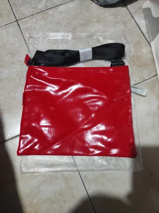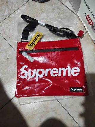 Borsello Supreme in colore rosso, nuovo con cartellino. - Logo Supreme stampato sul davanti. - Tasca esterna con zip. - Tracolla regolabile.