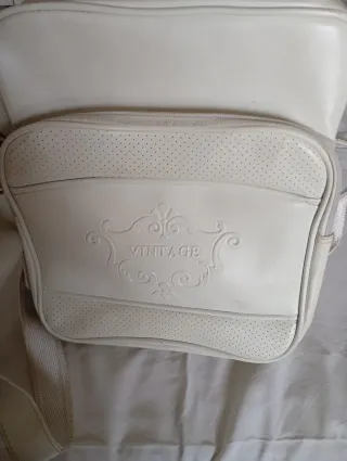 Zainetto borsa di colore bianco panna con un design vintage. - Dettaglio con microfori. - Logo VINTAGE in rilievo.