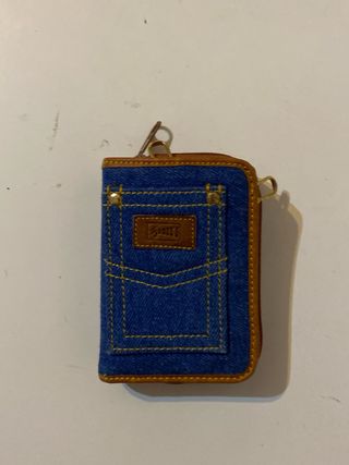 Portafogli vintage in denim con dettagli in pelle. Nuovo modo utilizzato spedito con la sua confezione  - Design vintage ispirato ai jeans. - Chiusura con cerniera. - porta banconote  - portamonete - portachiavi a