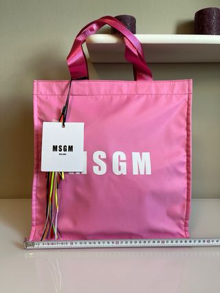 Borsa shopper MSGM in un vivace colore rosa. Piccolo difetto sulla lettera S vedi foto - Logo MSGM stampato sul davanti. - Manici in nastro. - Include dustbag con logo MSGM.