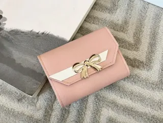 Elegante portafoglio da donna con un grazioso dettaglio a fiocco. - Colore rosa - Dettaglio fiocco color oro - Design compatto e nuovo