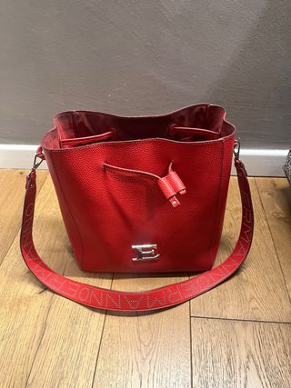 Ermanno Scervino borsa a secchiello in pelle rossa. - Logo metallico frontale. - Chiusura con coulisse. - Tracolla regolabile con logo. - Interno foderato.