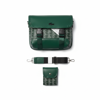 Borsa a tracolla Lacoste con motivo monogramma. - Tracolla regolabile. - Chiusura con fibbie. - Logo coccodrillo nero sul davanti.