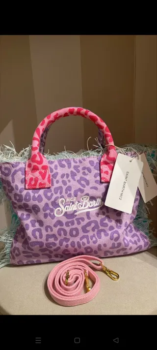 Borsa MC2 Saint Barth con un vivace motivo animalier rosa. - Tracolla removibile inclusa. - Dettagli sfrangiati. - Manici con fantasia. - Scritta The place to be Saint Barth Summer Paradise sul davanti.