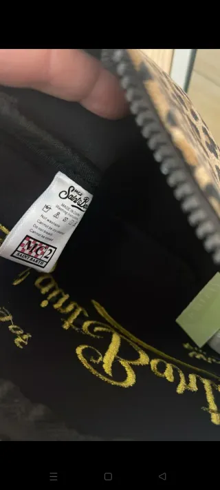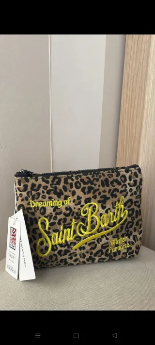 Pochette MC2 Saint Barth con fantasia leopardata e ricamo. - Fantasia leopardata. - Ricamo Dreaming of Saint Barth Winter Paradise giallo. - Chiusura con zip.