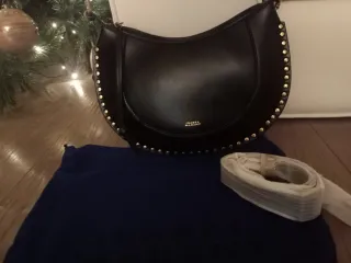 Borsa a tracolla in pelle nera con borchie dorate. - Design a mezzaluna. - Logo Isabel Marant dorato sul davanti. - Tracolla regolabile inclusa.