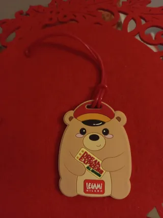 Simpatica etichetta per bagagli a forma di orsetto per valigie e borse, adatta a grandi e piccini. - Design con cappellino e biglietto Dream Express. - Cordino rosso per aggancio facile. - Logo Legami Milano sul fondo.