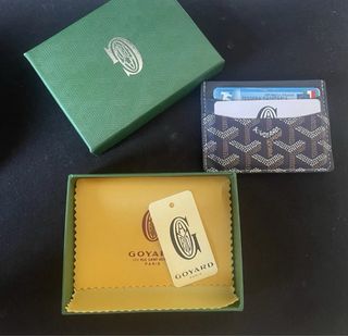 Elegante portacarte Goyard con il classico motivo. - Colore blu e beige. - Design compatto e funzionale.