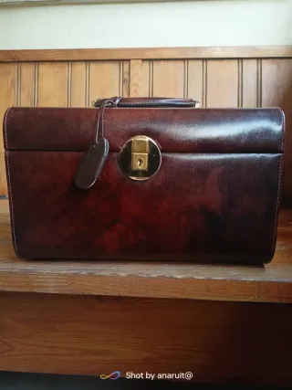 Elegante valigetta 24 ore, perfetta per viaggi di lavoro o brevi spostamenti. - Materiale: vera pelle. - Chiusura a combinazione dorata. - Manico robusto in pelle. - Dettagli con cuciture a contrasto.