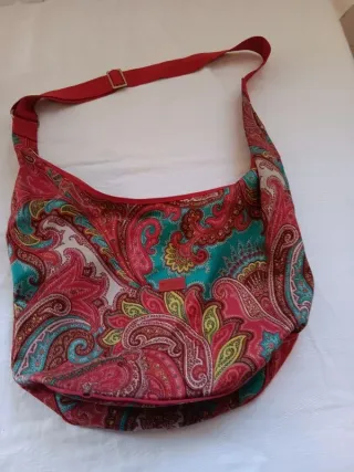 Borsa Etro modello hobo con una vivace fantasia. Borsa Etro hobo dagli splendidi colori accesi nei toni del rosso turchese giallo etc.. capiente e schiacciabile lavabile misura larghezza 60 cm altezza 40 cm profondità 18 - Fantasia paisley. - Tracolla regolabile rossa. - Dettagli in pelle rossa.