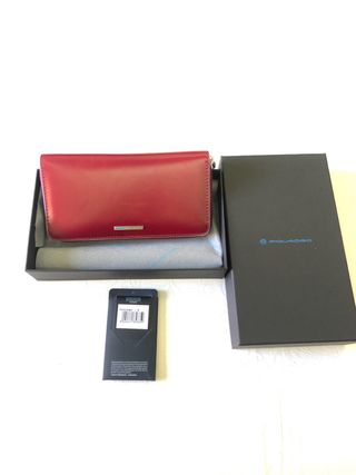 Elegante portafoglio Piquadro di colore rosso. - Design compatto e raffinato. - Logo Piquadro in metallo. - Chiusura a patta. - Include scatola originale e cartellino.