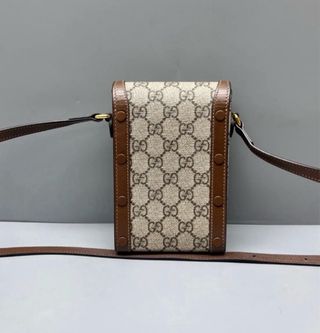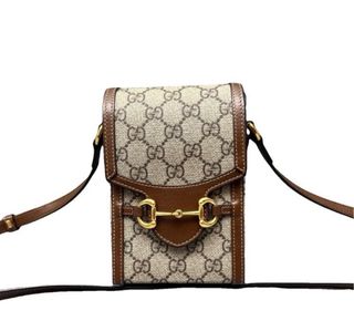 Elegante borsa a tracolla con il classico monogramma Gucci. - Motivo GG Supreme. - Dettagli in pelle marrone. - Chiusura con fibbia Horsebit dorata.