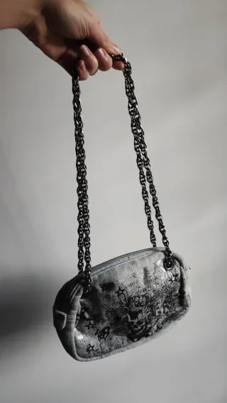 Borsetta Y2K Grigia Stampa Goth/Rock e tracolla
