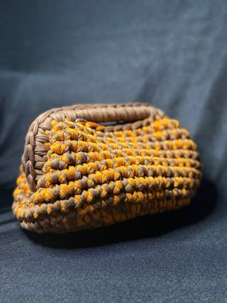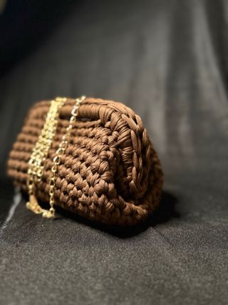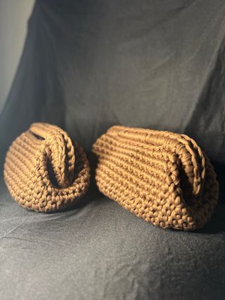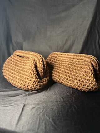 Elegante pochette realizzata all'uncinetto in una tonalità beige calda. Perfetta per aggiungere un tocco di stile. - Materiale: Filato robusto - Design: Chiusura a molla con possibilità di scelta dimensione - Finitura: Lavorazione a maglia visibile