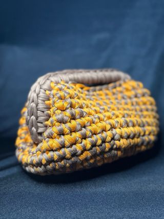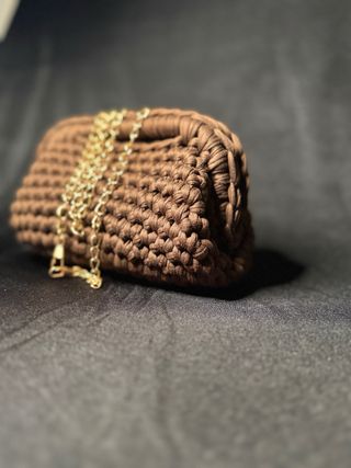 Elegante pochette lavorata all'uncinetto, perfetta per completare il tuo look. - Materiale morbido e resistente. - Accessori personalizzabili. - Chiusura a scatto.