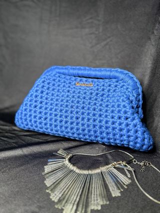 Clutch blu elettrico fatta a mano